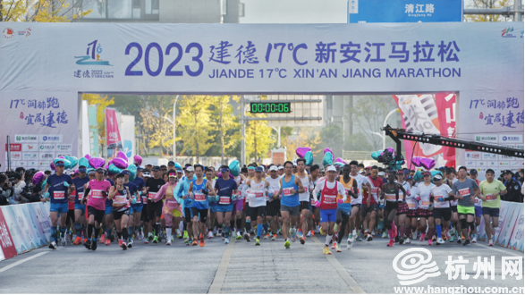 On the morning of November 19, Jiande 17℃ Xin'an Jiang Marathon 2023 was held in Jiande, Hangzhou, attracting 12,000 participants, including 19 ones from Germany, Korea, Japan, USA, as well as Chinese players from 348 cities.