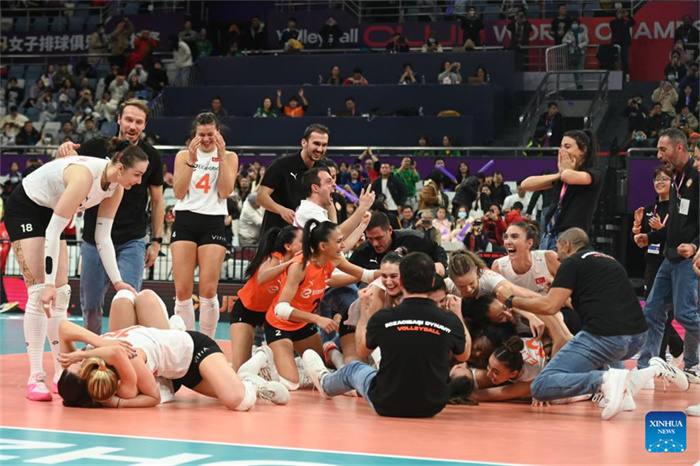 HANGZHOU, Dec. 17 (Xinhua) -- Türkiye's Eczacibasi overcame 4-time winner VakifBank in full sets to win its third Volleyball Women's Club World Championship here on Sunday, while China's Tianjin Bohai Bank made it to the podium for the first time after beating Brazil's Dentil Praia.
