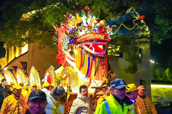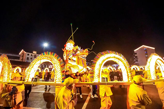 On February 24, as the national intangible cultural heritage project, Heshang Dragon Lantern Show was staged in Heshang Town, Xiaoshan District, Hangzhou.