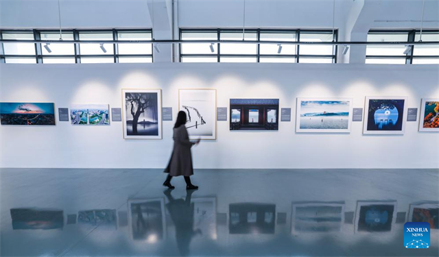 A woman visits a photography exhibition themed on China's world heritage in Hangzhou, east China's Zhejiang Province, Nov. 25, 2024. The exhibition held here on Monday presents China's 59 sites that have been inscribed on the UNESCO World Heritage List. (Xinhua/Xu Yu)