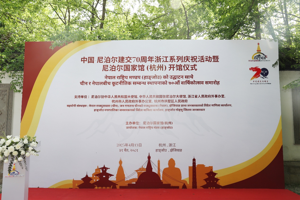 2025 marks the 70th anniversary of theestablishment of diplomatic ties between China andNepal. On April 13, the opening ceremony of Nepal National Pavilion (Hangzhou) was held in Gaojia Garden, Gongshu District, Hangzhou.Nepal's ambassador to China, the mayor of Lalitpur, the deputy mayor of Hangzhou, and other distinguished guests participated in the event.