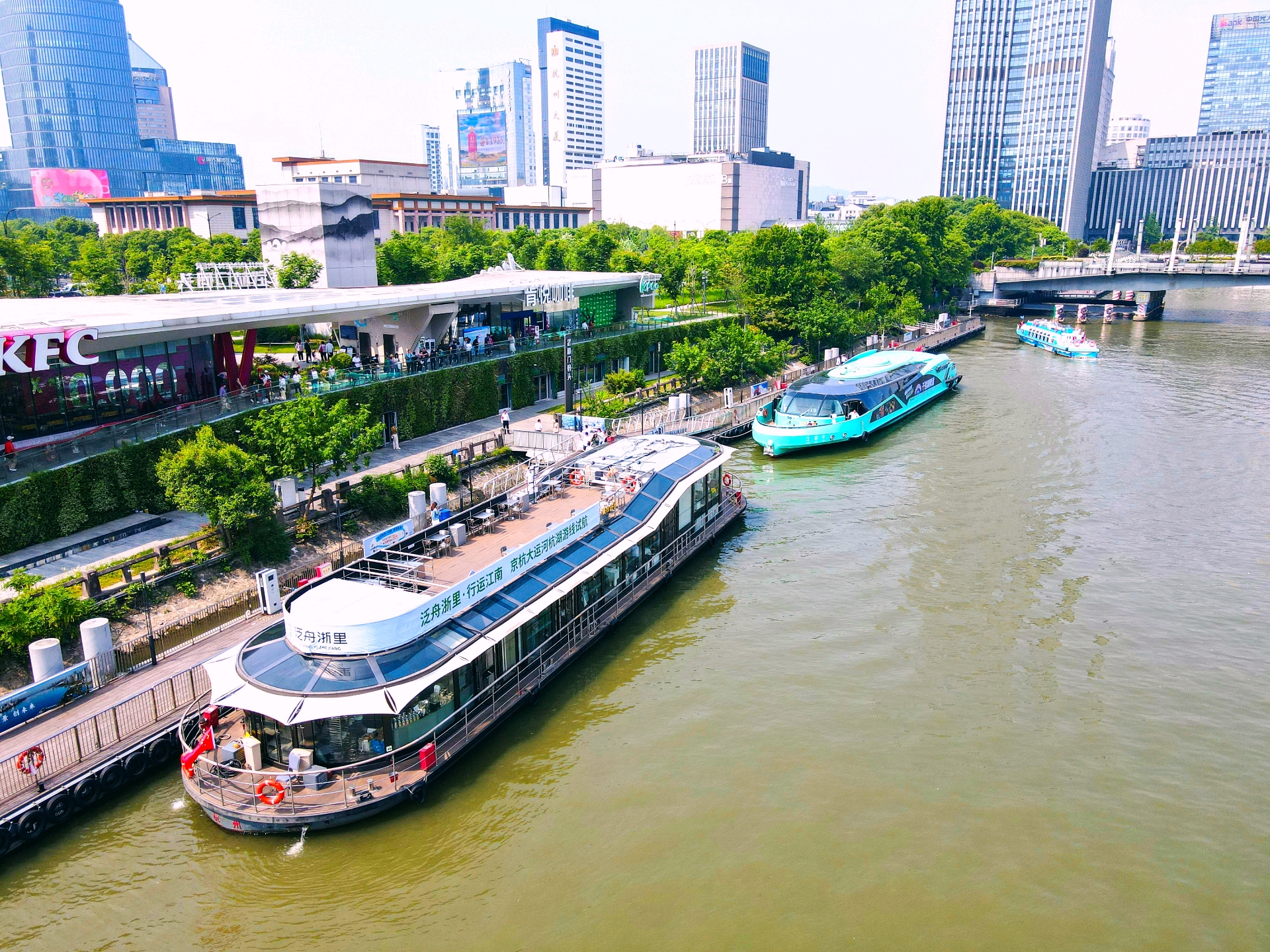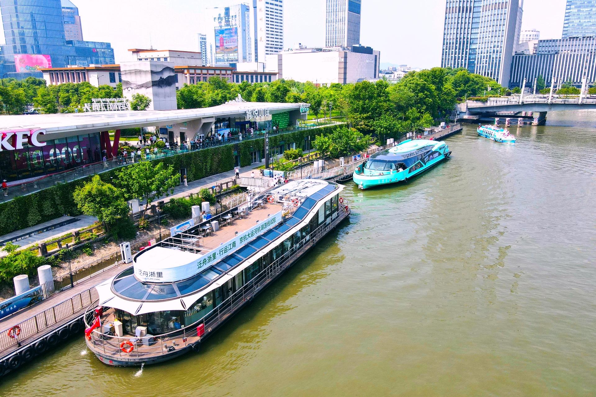 Hangzhou-Huzhou water bus was put into trial operation at Hangzhou Wulinmen Pier on April 28.