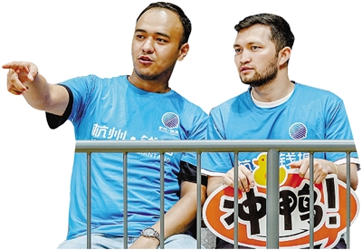 Filion and Richard, two Uzbek students from Hangzhou Dianzi University, recently came to the venue of Zhejiang Provincial City Basketball League (ZheBA), and cheered for teams.