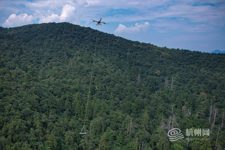 Tianmushan boasts the forest coverage rate of 97.56 percent, with numerous ancient trees. In the past, the manual transportation and maintenance of materials required a lot of time, energy and attention. Nowadays, the staff operate drones inperipheralareas, which can accurately and quickly deliver materials, save time and manpower, and reduce the impact on the surrounding ecosystem.