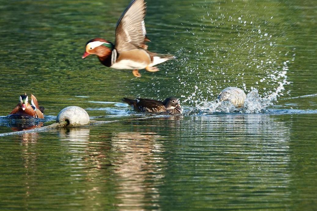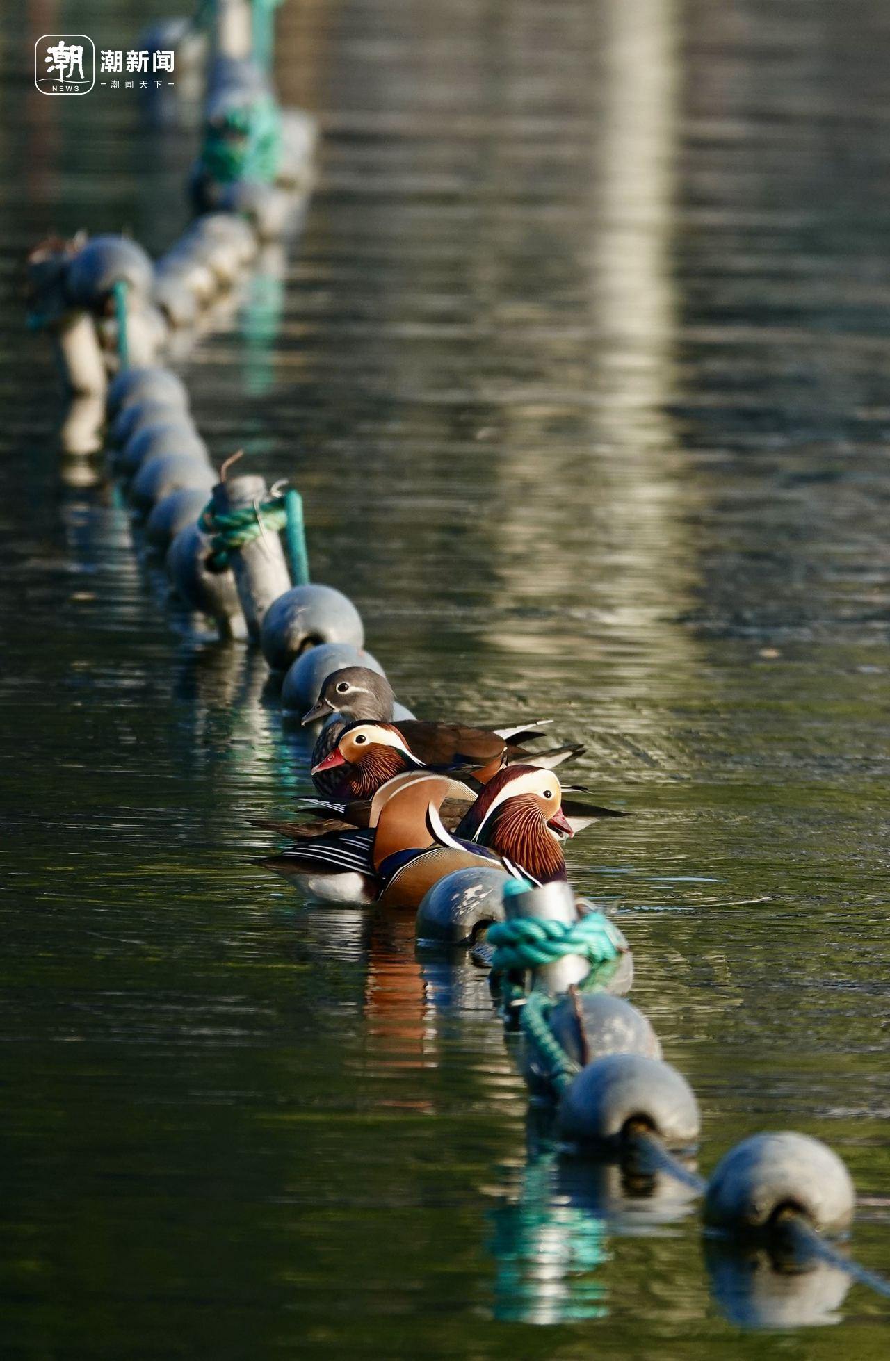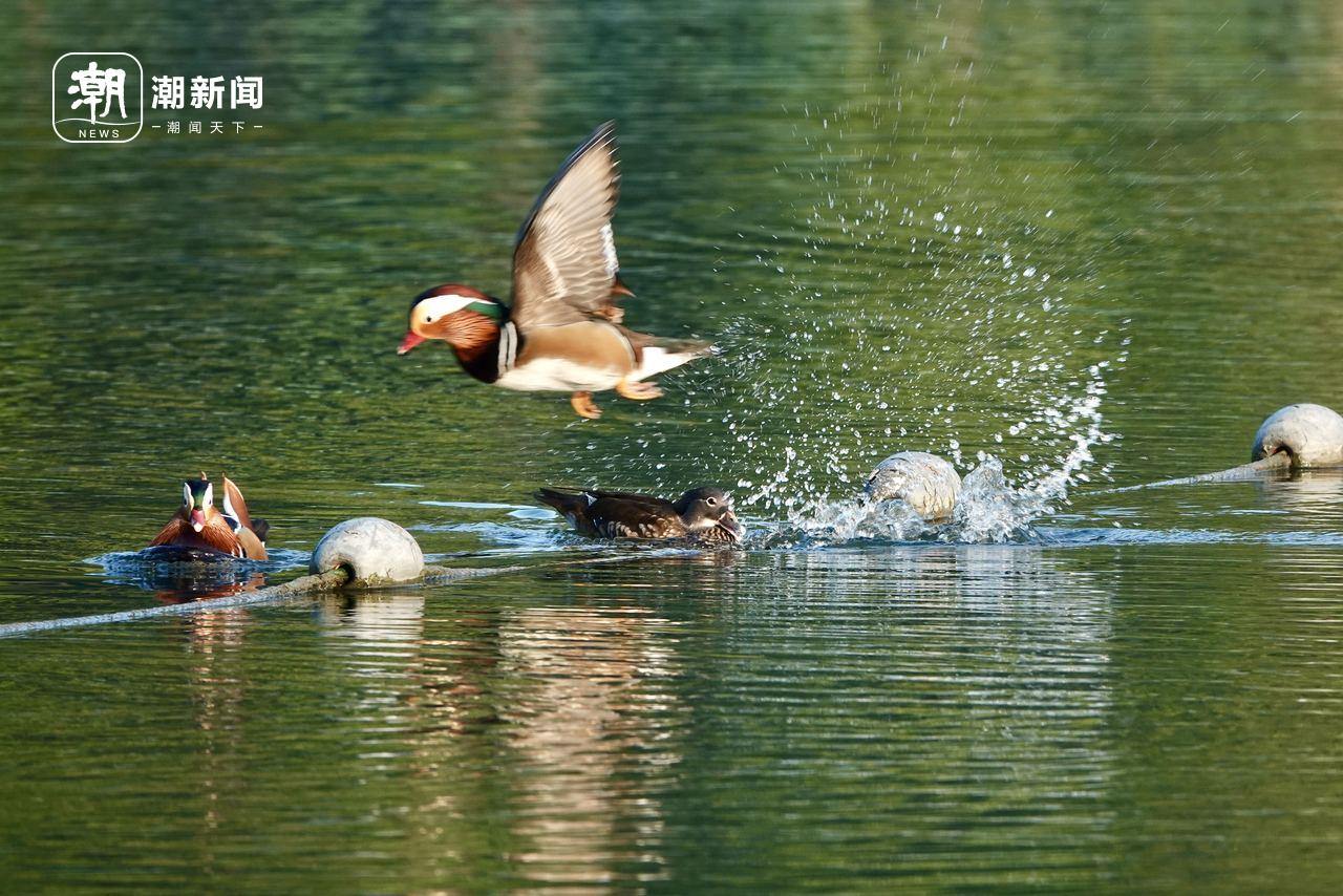 In the water area of Hangzhou Isolated Hill Park, many male mandarin ducks with new bright feathers play on the lake together with female mandarin ducks, to prepare for reproduction in winter and present a beautiful ecological picture to tourists.