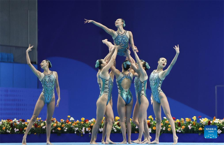 HANGZHOU, Oct. 8 (Xinhua) -- China won the Team gold medal in the Artistic Swimming after ranking first in the Team Free Routine on Sunday. The hosts grabbed both golds in Artistic Swimming as they also claimed Duet title on Saturday.