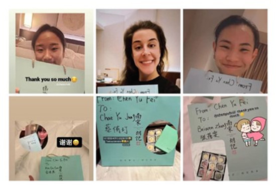 Athletes shared gifts from Chen Yufei.