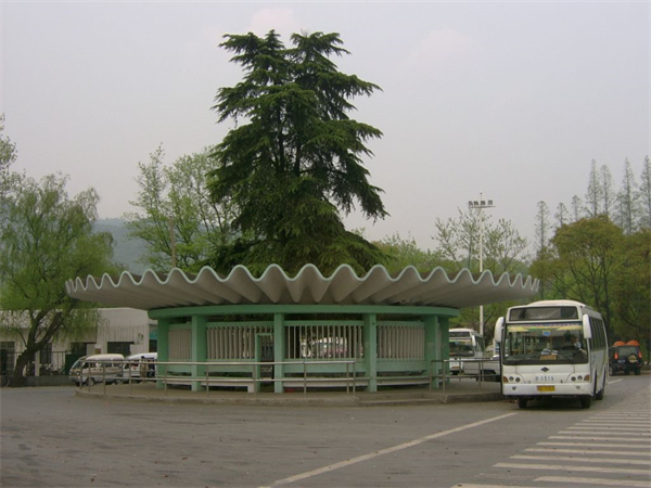 Jiuxi Bus Station is composed of circular pavilion and crescent-shaped waiting corridor, and is a landmark building of Jiuxi. Its design is advanced, and has won an architecture award.