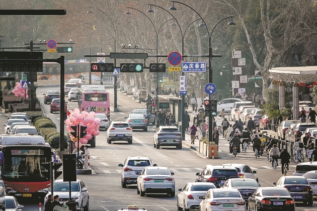 Vehicles and tourists on Hangzhou’s scenic area at Qingchun Road, February 11.