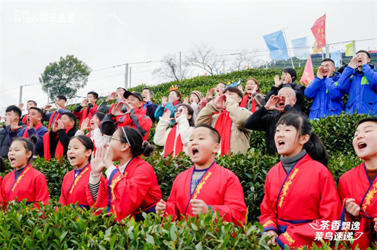 The Waking of Insects falls on March 5. Tea farmers in Wengjiashan Village of Hangzhou held a traditional activity of "shouting in mountains" in the tea garden.
