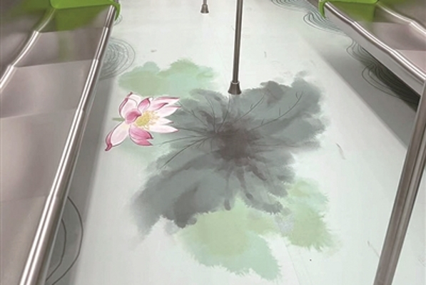 The train is mainly in light and green. In the carriage, lake waves and lotus leaves are perfectly combined with bamboos and orchids, signifying a traditional Chinese style.
