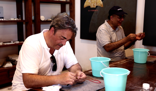 To fully immerse in Liangzhu culture, guests participated in a jade DIY workshop. Using files, they crafted jade birds, creating unique necklaces with a distinct Liangzhu charm.