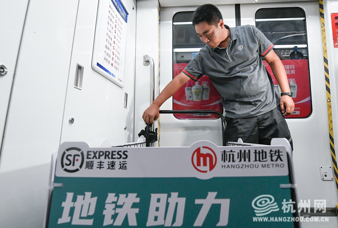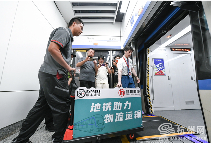 This is a pilot project for express transportation among metro stations conducted by Hangzhou to reduce logistics costs through making full use of metro.