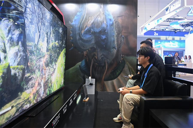 Visitors try the games at the booth of "Black Myth: Wukong" during the third Global Digital Trade Expo in Hangzhou, east China's Zhejiang Province, Sept. 25, 2024. (Xinhua/Huang Zongzhi)