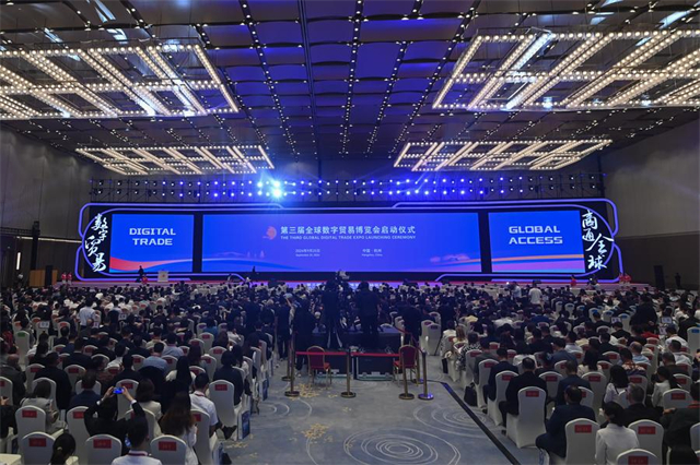 This photo taken on Sept. 25, 2024 shows the launching ceremony of the third Global Digital Trade Expo in Hangzhou, east China's Zhejiang Province. (Xinhua/Huang Zongzhi)