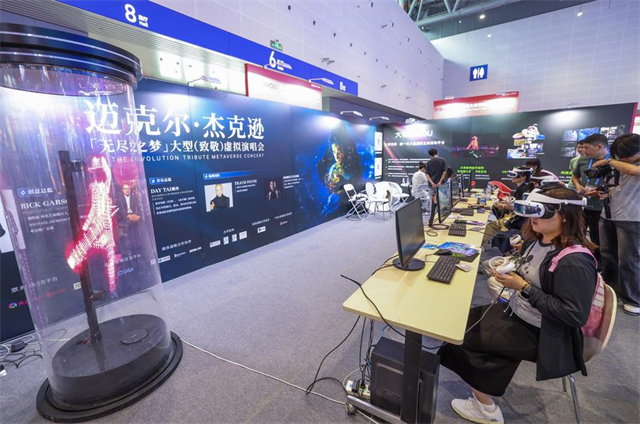 People use VR devices to enjoy virtual concerts during the third Global Digital Trade Expo in Hangzhou, east China's Zhejiang Province, Sept. 25, 2024. (Xinhua/Xu Yu)