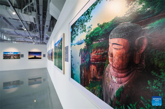 This photo taken on Nov. 25, 2024 shows the exhibits displayed on a photography exhibition themed on China's world heritage in Hangzhou, east China's Zhejiang Province. The exhibition held here on Monday presents China's 59 sites that have been inscribed on the UNESCO World Heritage List. (Xinhua/Xu Yu)