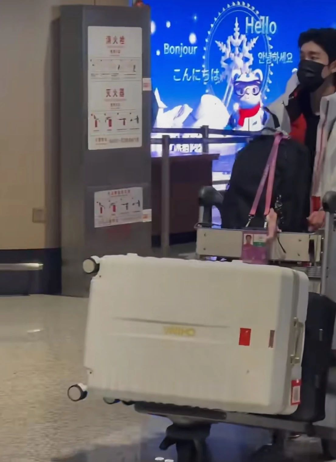 The suitcase is designed to highlight the ice & snow theme of the Asian Winter Games with white look, its shape is inspired by Liangzhu's Jade Cong, and its lining is decorated with golden dragon and auspicious cloud patterns, standing for good wishes for Chinese athletes. It is beautiful and lightweight, with strong low temperature resistance.