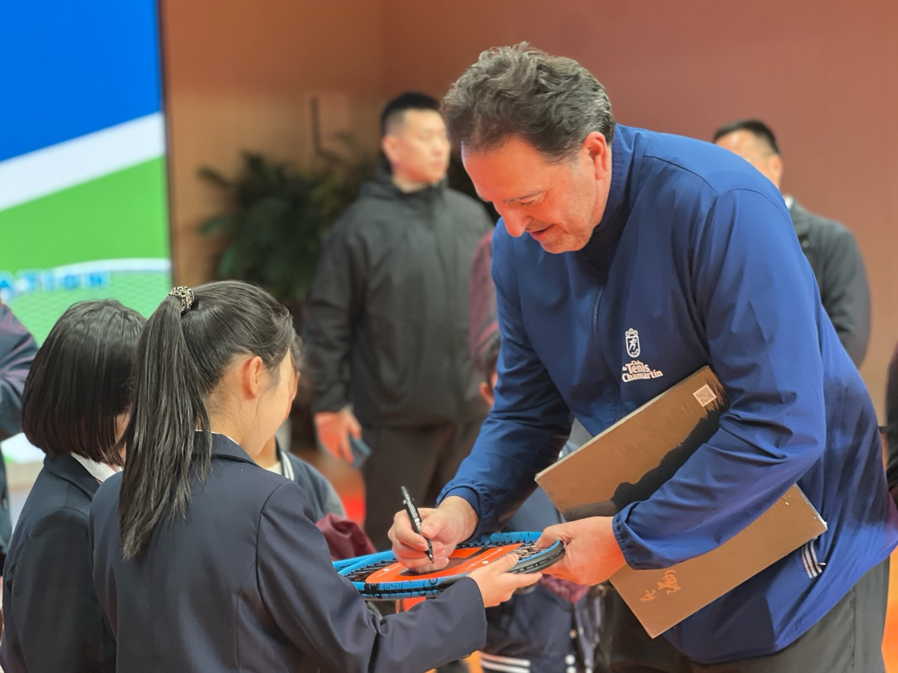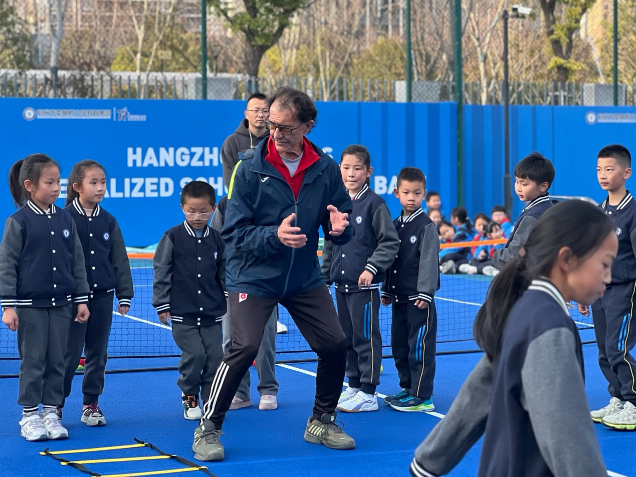 On March 19, Madrid Tennis Federation (FTM) President Tati, Zhejiang Tennis Association President Guo Jianbiao, and other Chinese and foreign guests gathered in Hangzhou Maiyuqiao Primary School to jointly discuss the development of campus sports culture.