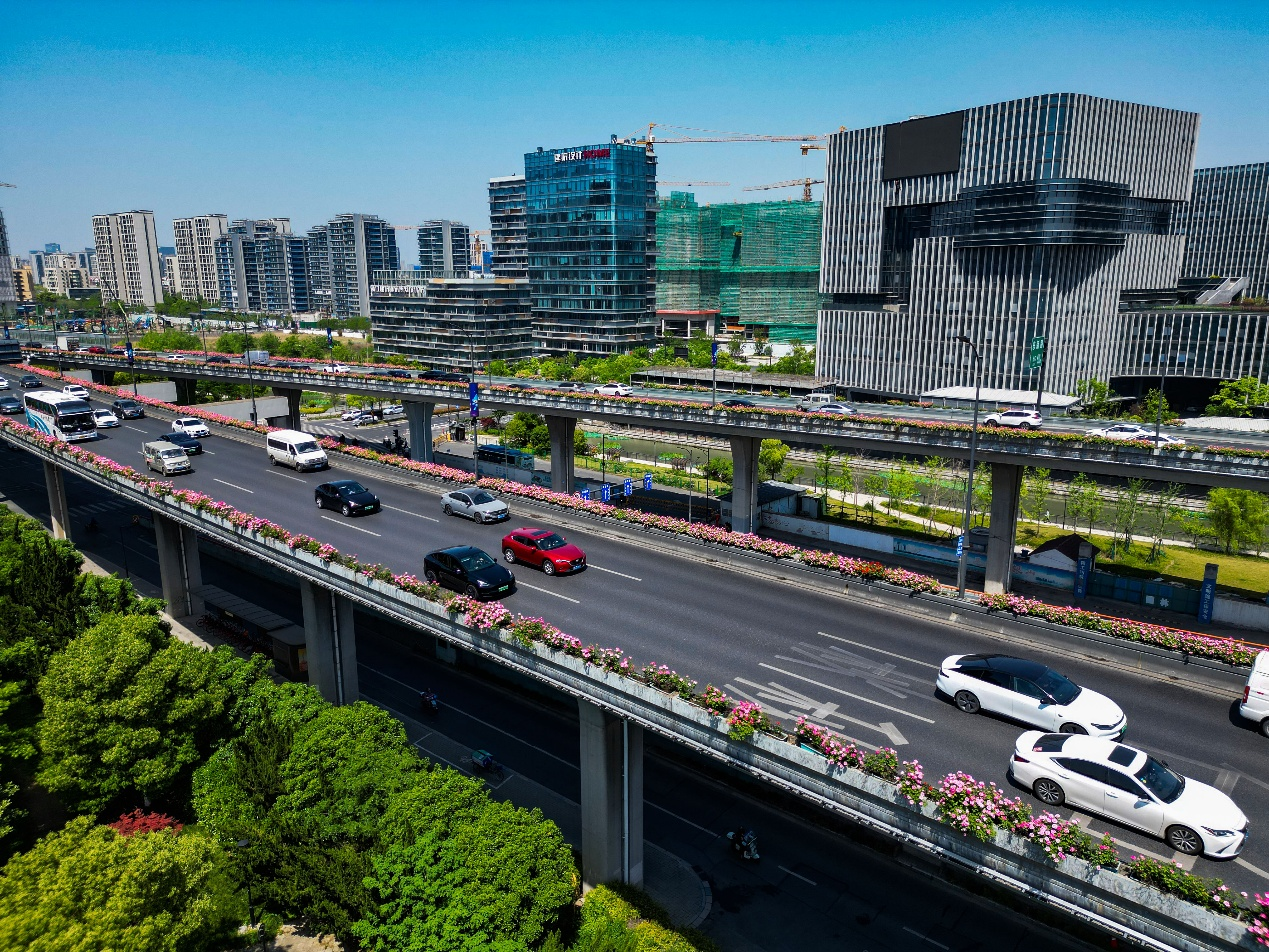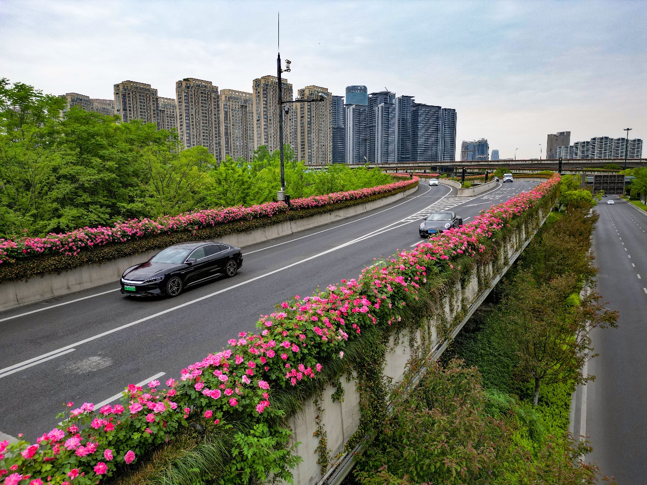 Recently, the elevated roads of Hangzhou have been lined with colorful flowers. About 2.15 million rose plants involved in more than 40 varieties bloom to offer a stunning "sky flower corridor".
