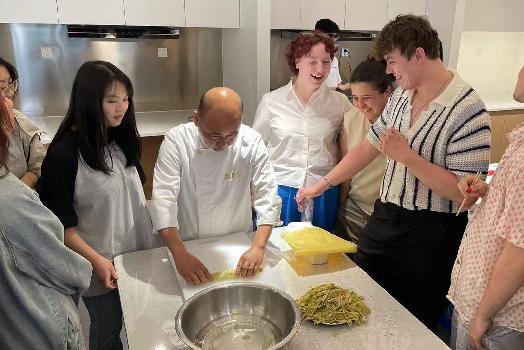 Ma Kunshan is the owner of Michelin Bib Gourmand restaurant Hao Canteen 1987. On April 22, He taught 14 young foreigners from the UK, Germany and other countries to cook Hangzhou cuisine, and he told the reporter, "Foreigners think Hangzhou cuisine is very delicious."