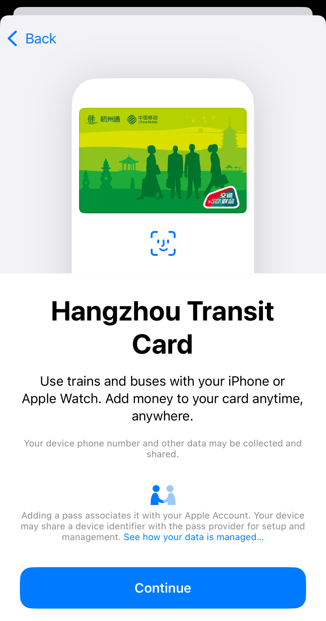 Now, getting around Hangzhou just got easier. Simply addyour Hangzhou Transit Card to Apple Pay, you can tap your iPhone or Apple Watch to ride subways and buses across the city—fast, secure, and hassle-free.