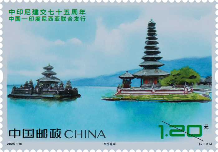 A total of 4.5 million stamp sets will be issued, with each set containing 2 stamps. This set of commemorative stamps features photographs of the West Lake in Hangzhou and Bratan Lake in Indonesia.